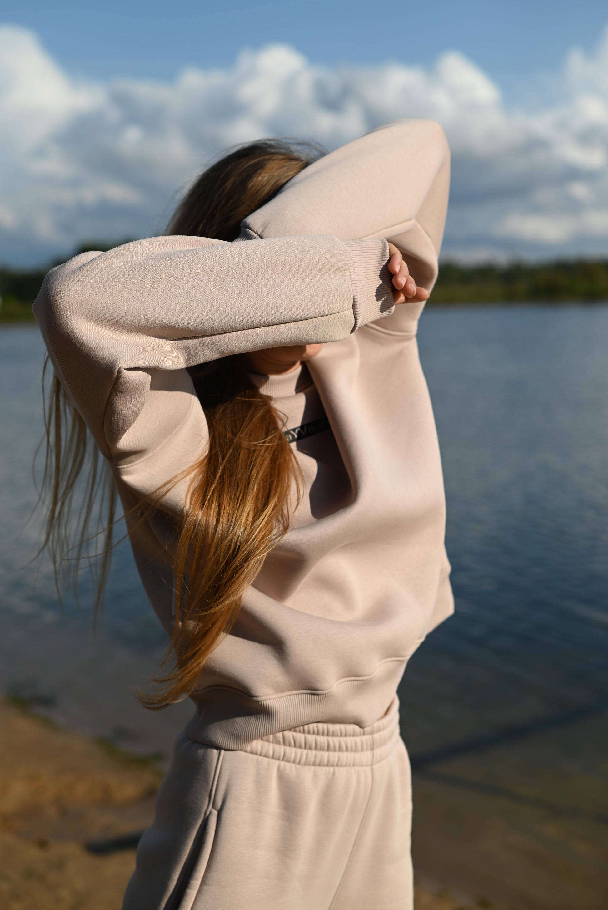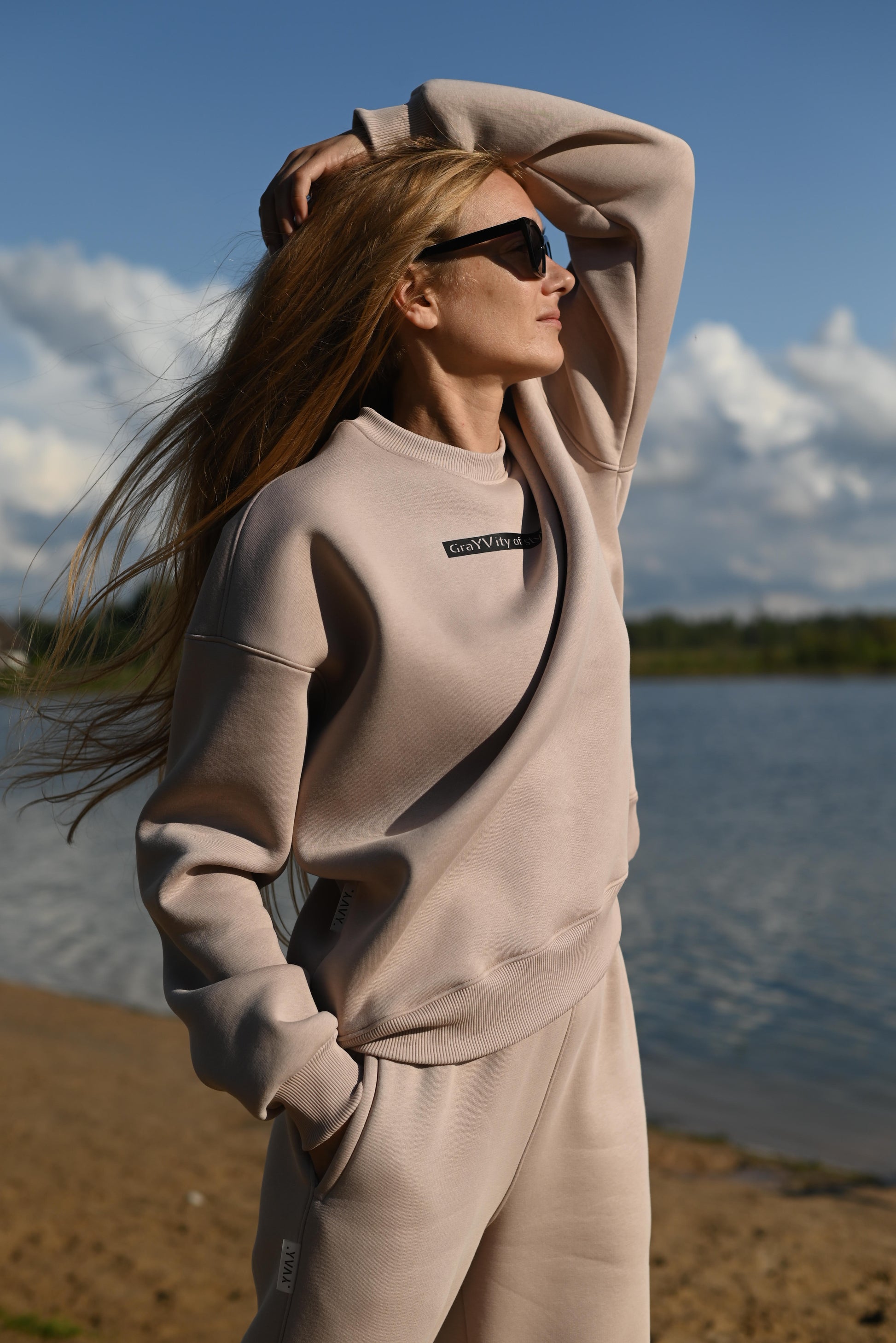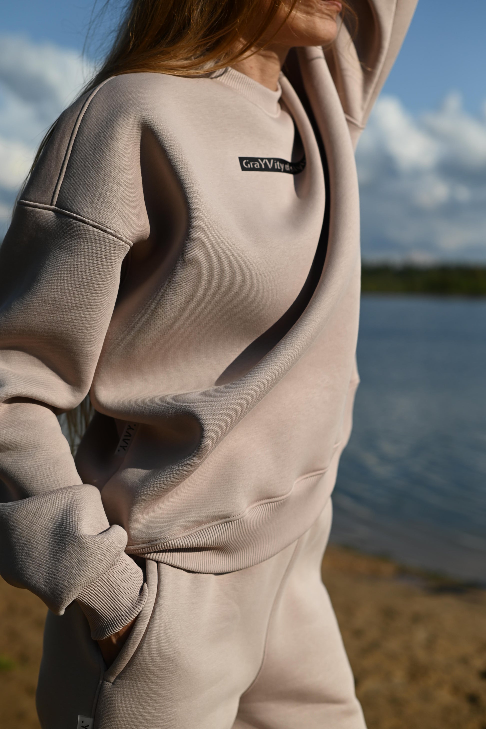 Elegant cashmere-colored hoodie, soft and comfortable.