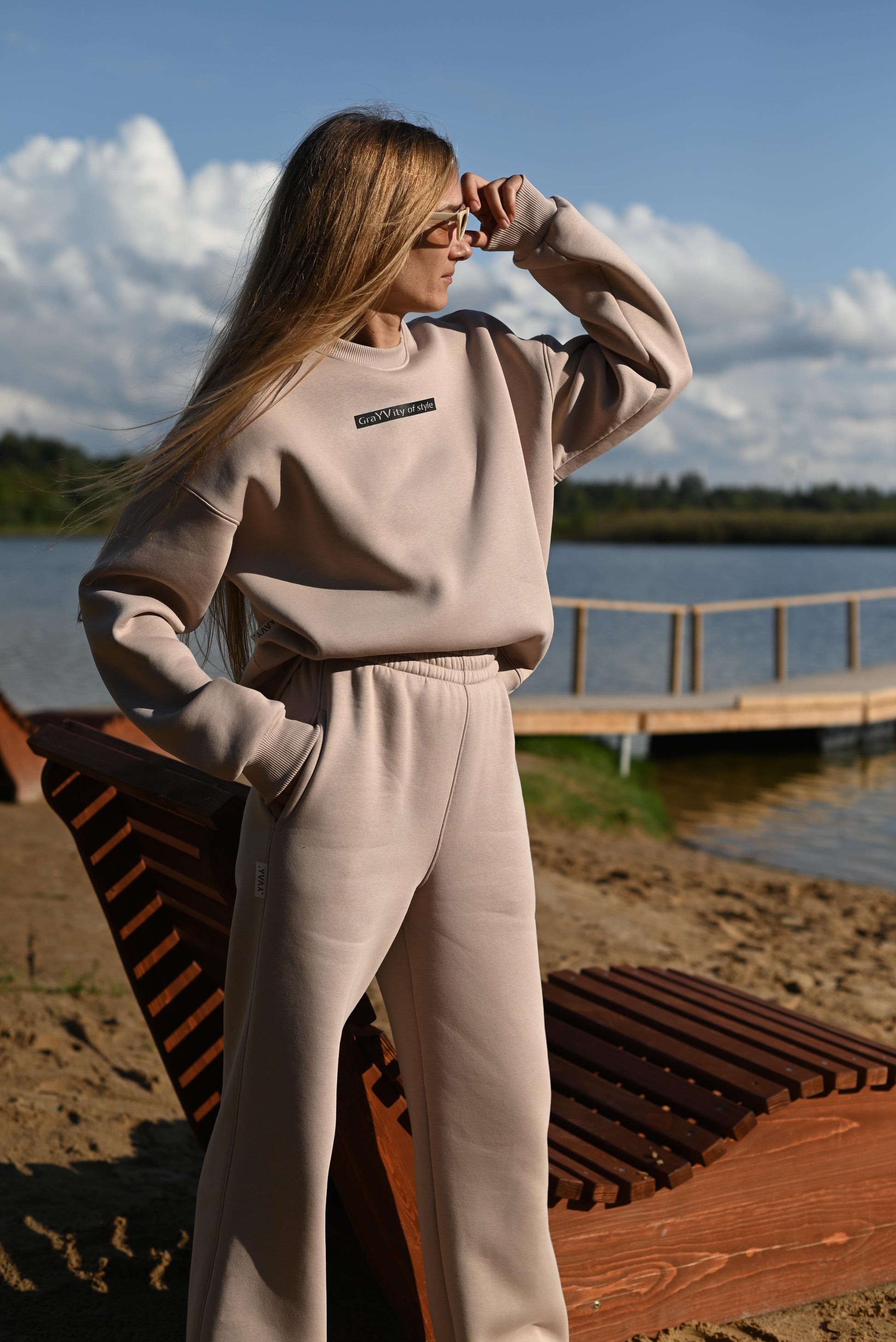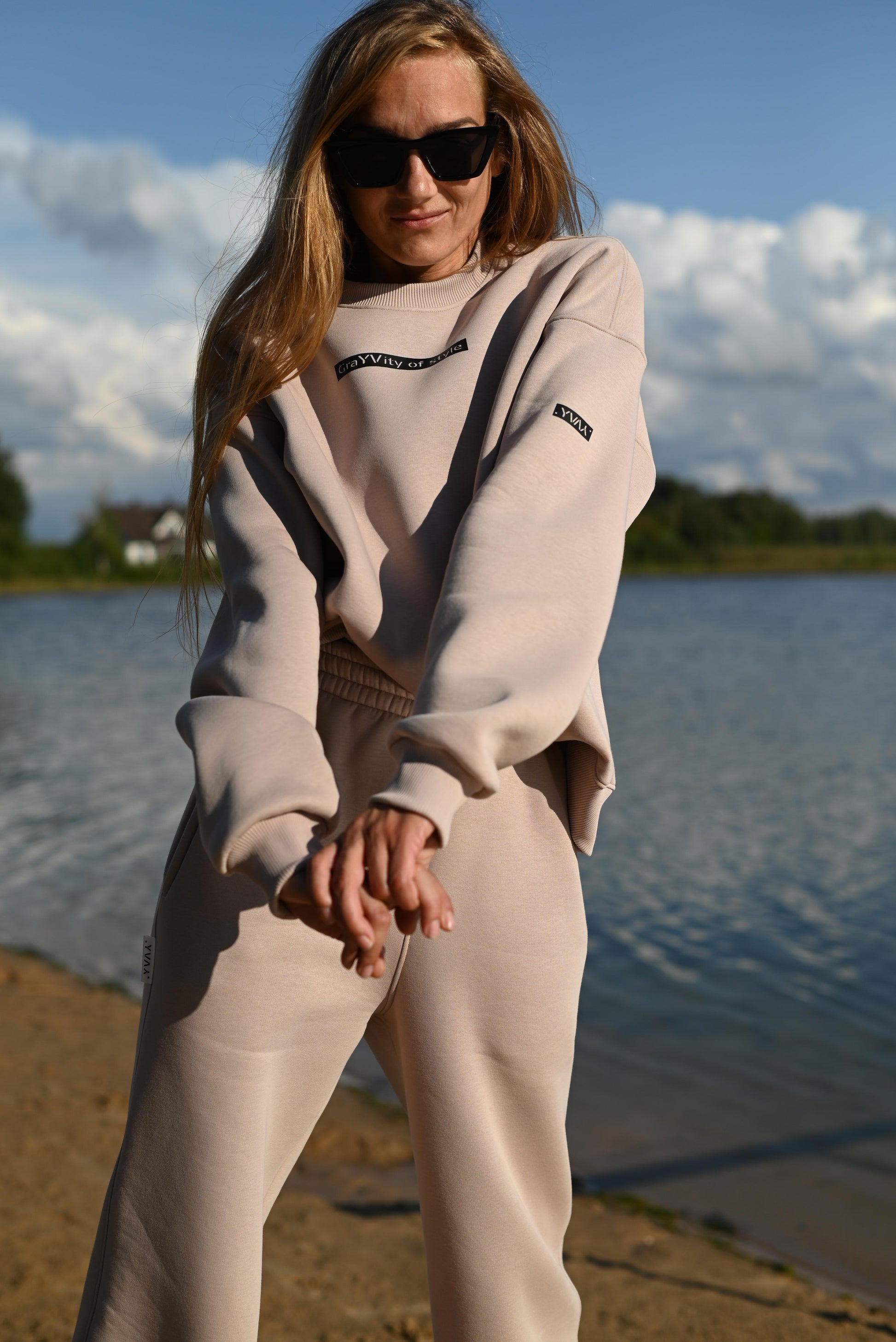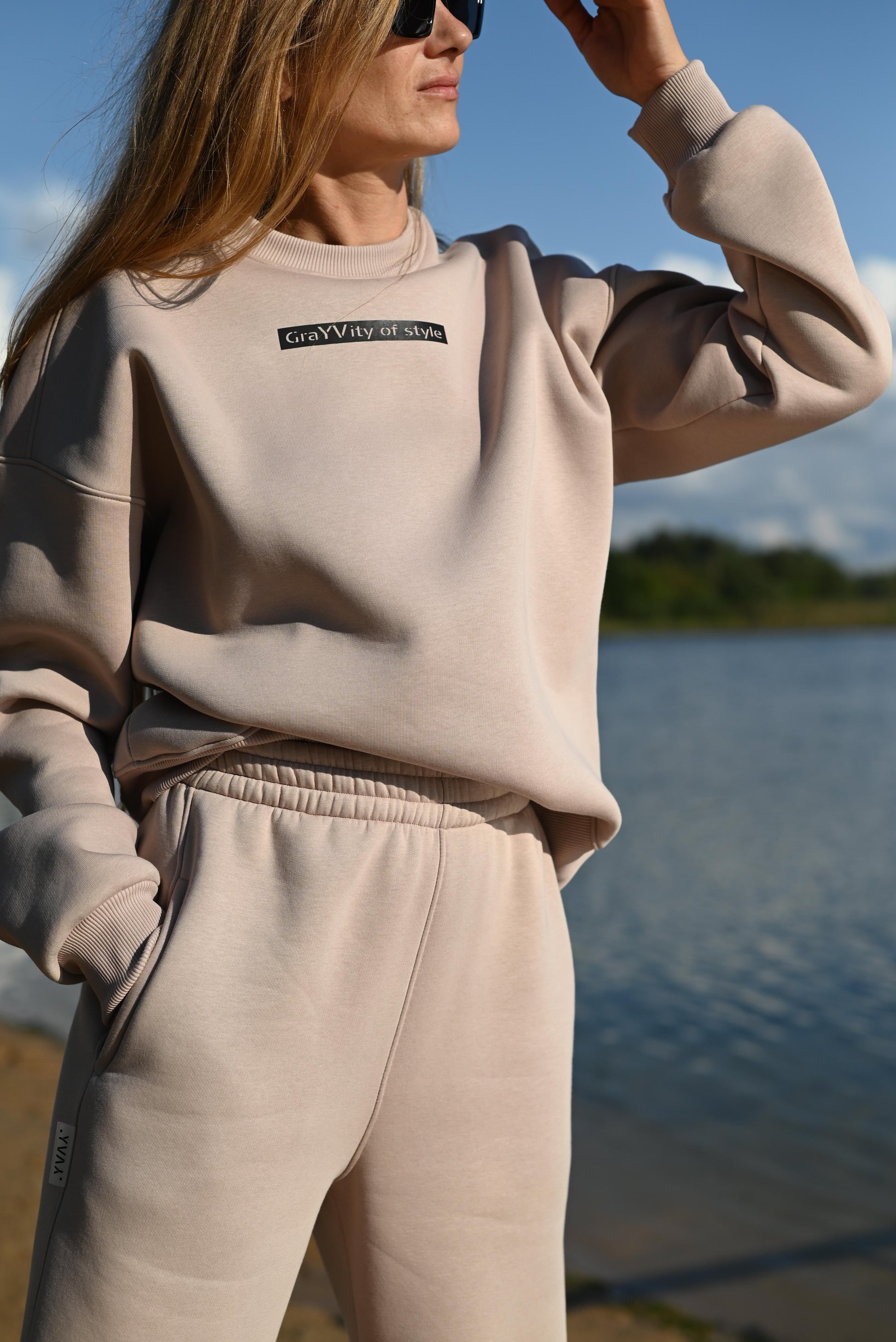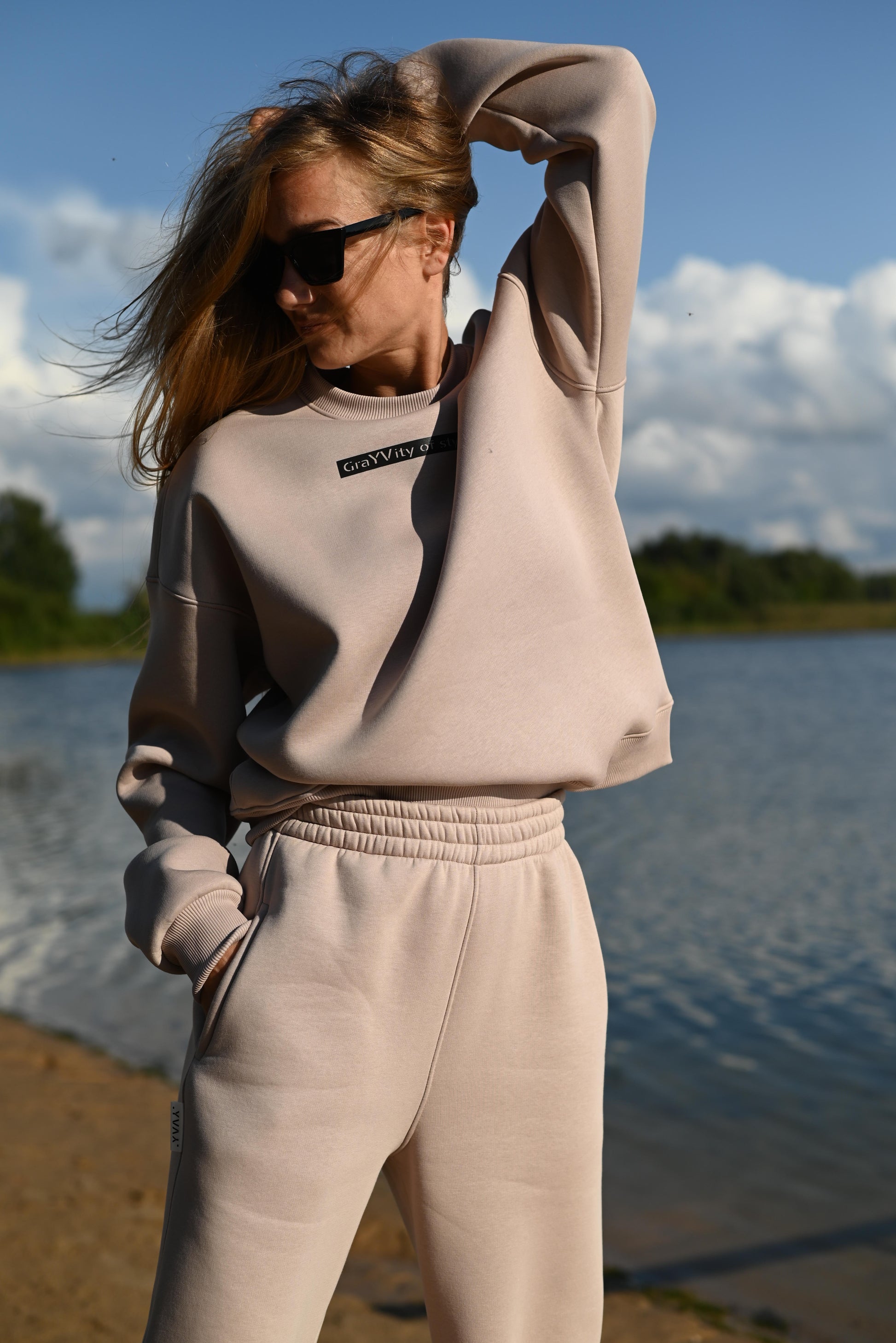 Elegant cashmere-colored hoodie, soft and comfortable.